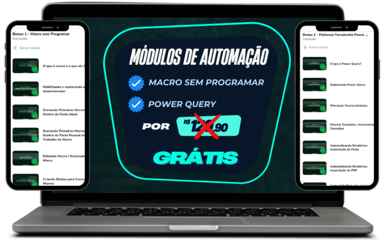 Você também terá acesso a um suporte exclusivo para tirar suas dúvidas e garantir que nada atrapalhe o seu aprendizado. Seja para organizar suas finanças, criar relatórios ou melhorar sua produtividade, este curso vai te guiar passo a passo para que você alcance seus objetivos no Excel, mesmo que ainda tenha pouca experiência.